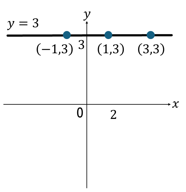 同じように、\(y=3\)という式ならば、