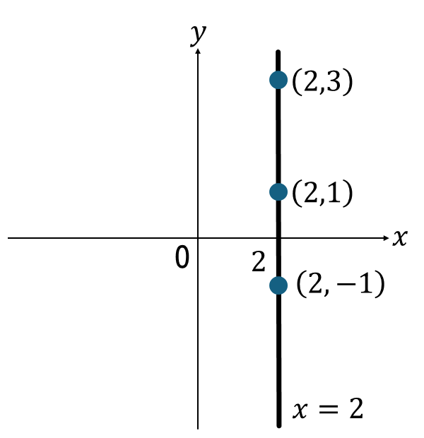 たとえば、\(x=2\)のグラフを描くときであれば、