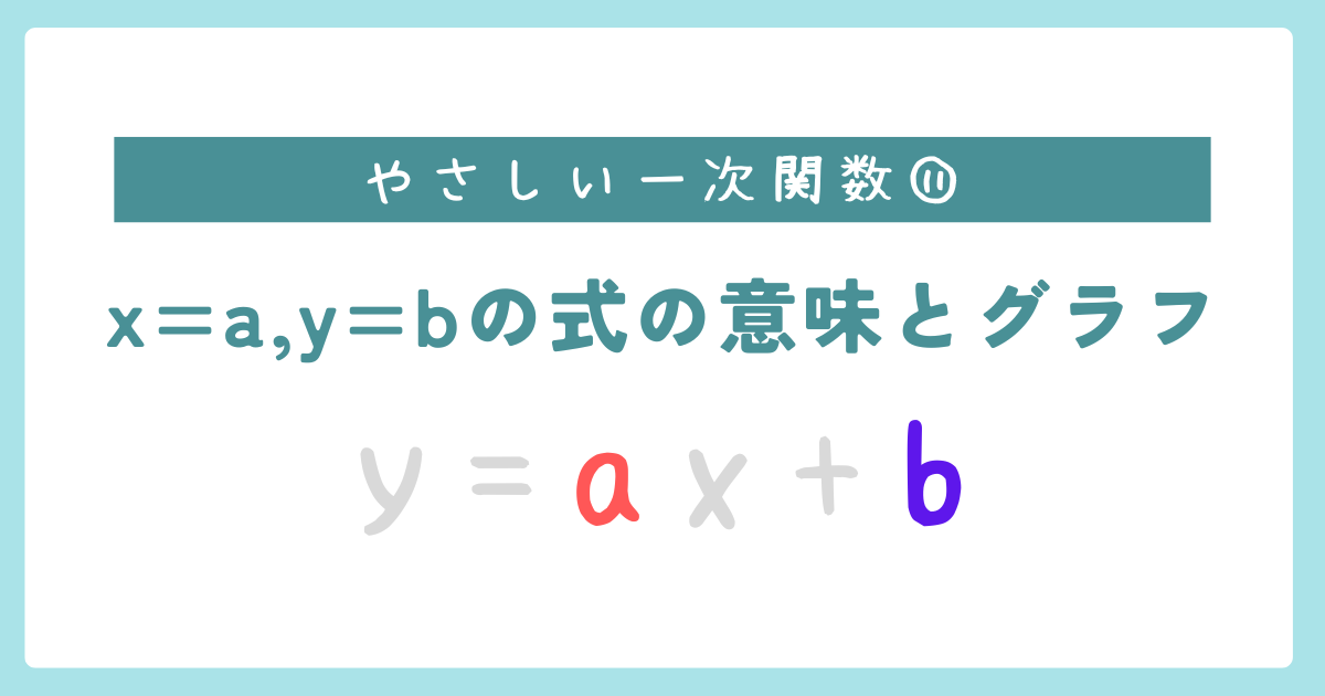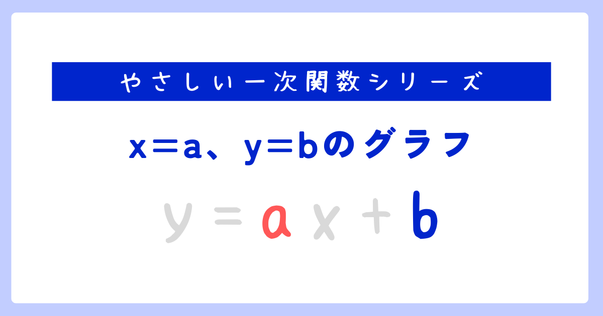 今回の記事では、一次関数でない直線の式「\(x=a\)、\(y=b\)」について取り扱いました。