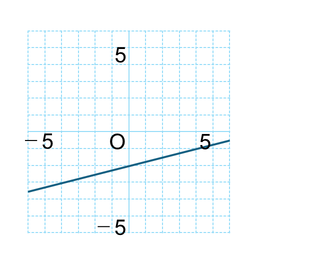 まず切片をとり、傾きを使ってもう1点を考えると、簡単にグラフを描けます。