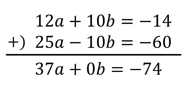 \(12a+10b=-14\)…①'(①×2)