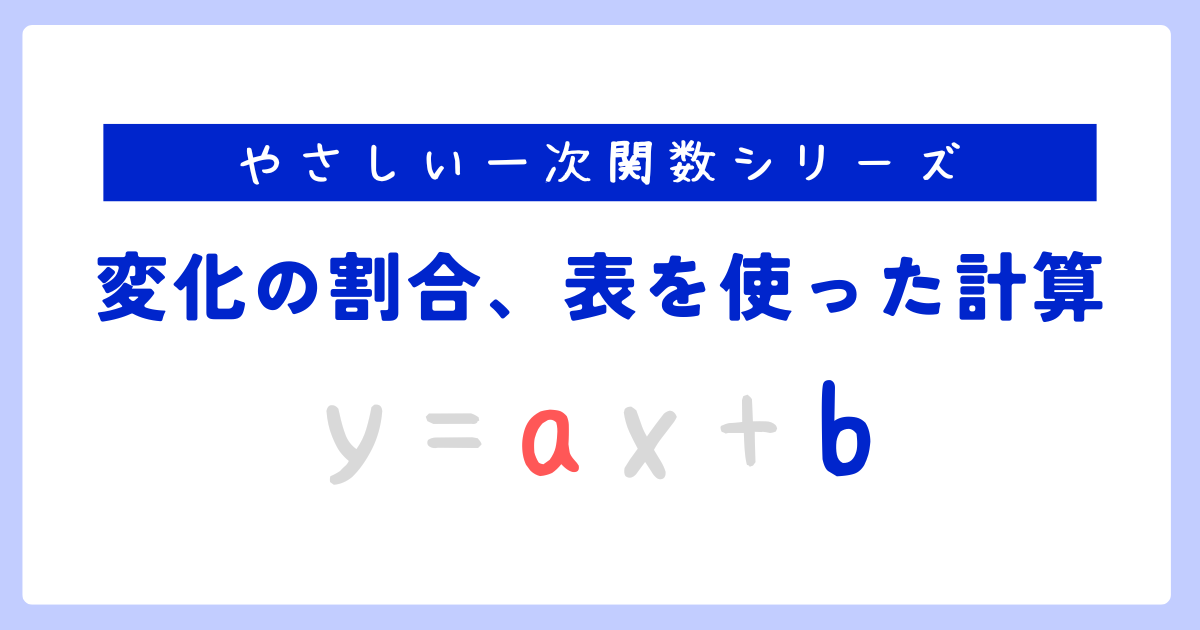 「変化の割合の計算⇒\(x,y\)の増加量が必要⇒\(x,y\)の計算が必要」という考え方を身に付けてください。